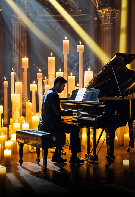 В сиянии тысяч свечей музыка раскрывается по-новому, наполняя пространство магией и вдохновением.